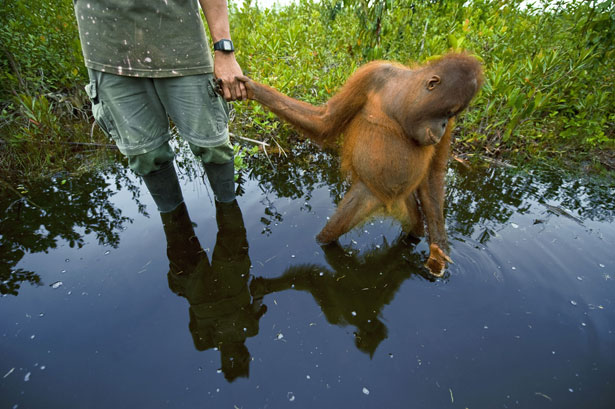 The race to deforest Borneo for palm oil and coal is leaving so many animals like this orangutan homeless. It is, in fact, up to each of us to make the correct consumer choices. Scrutinize all labels, refuse to purchase any products containing palm oil. Together our purchasing power is indeed formidable. Timber-mining Borneo’s rainforests and their conversion to vast monoculture palm oil plantations is expediently killing our planet. Photo credit: ngm.com